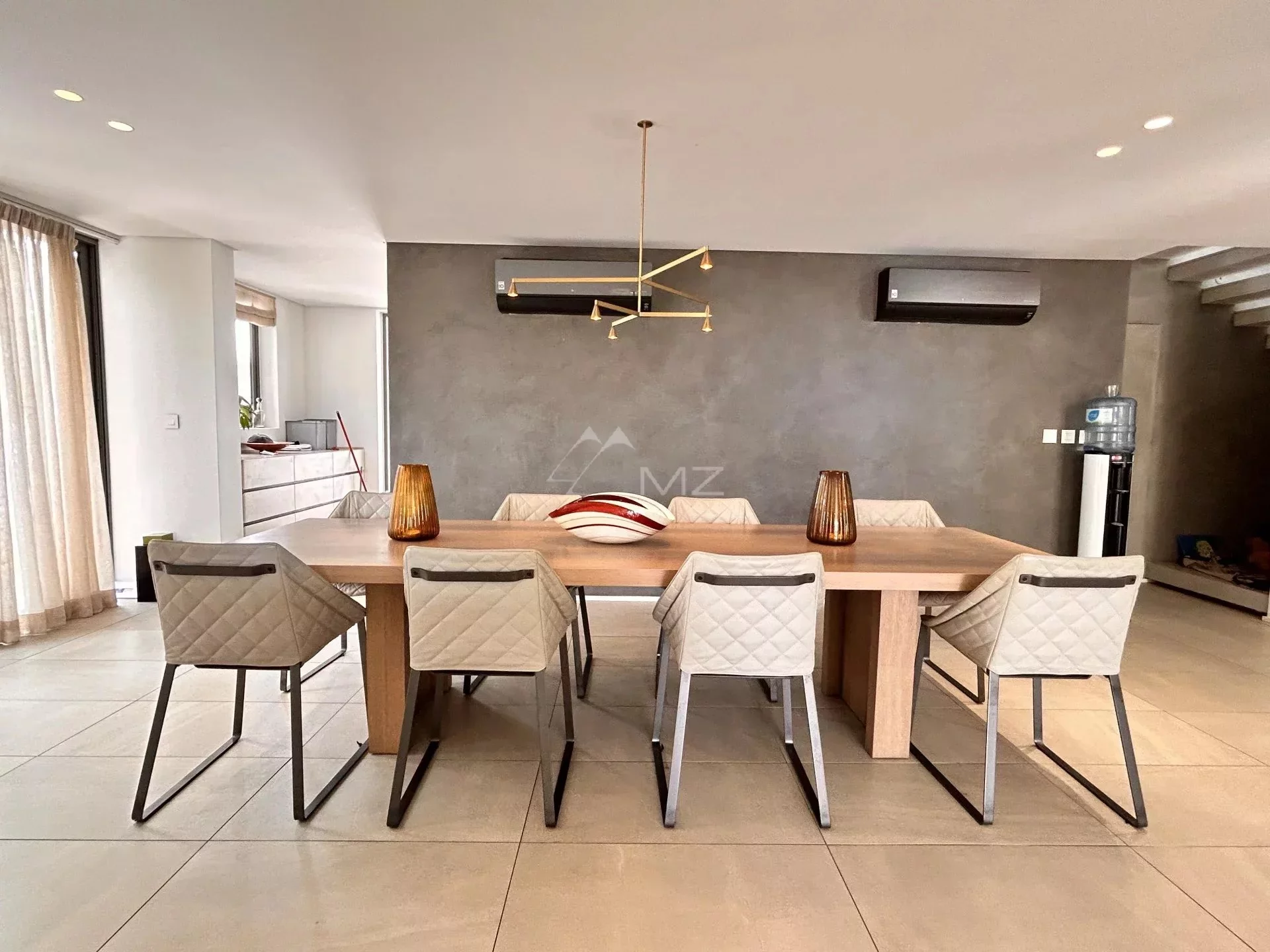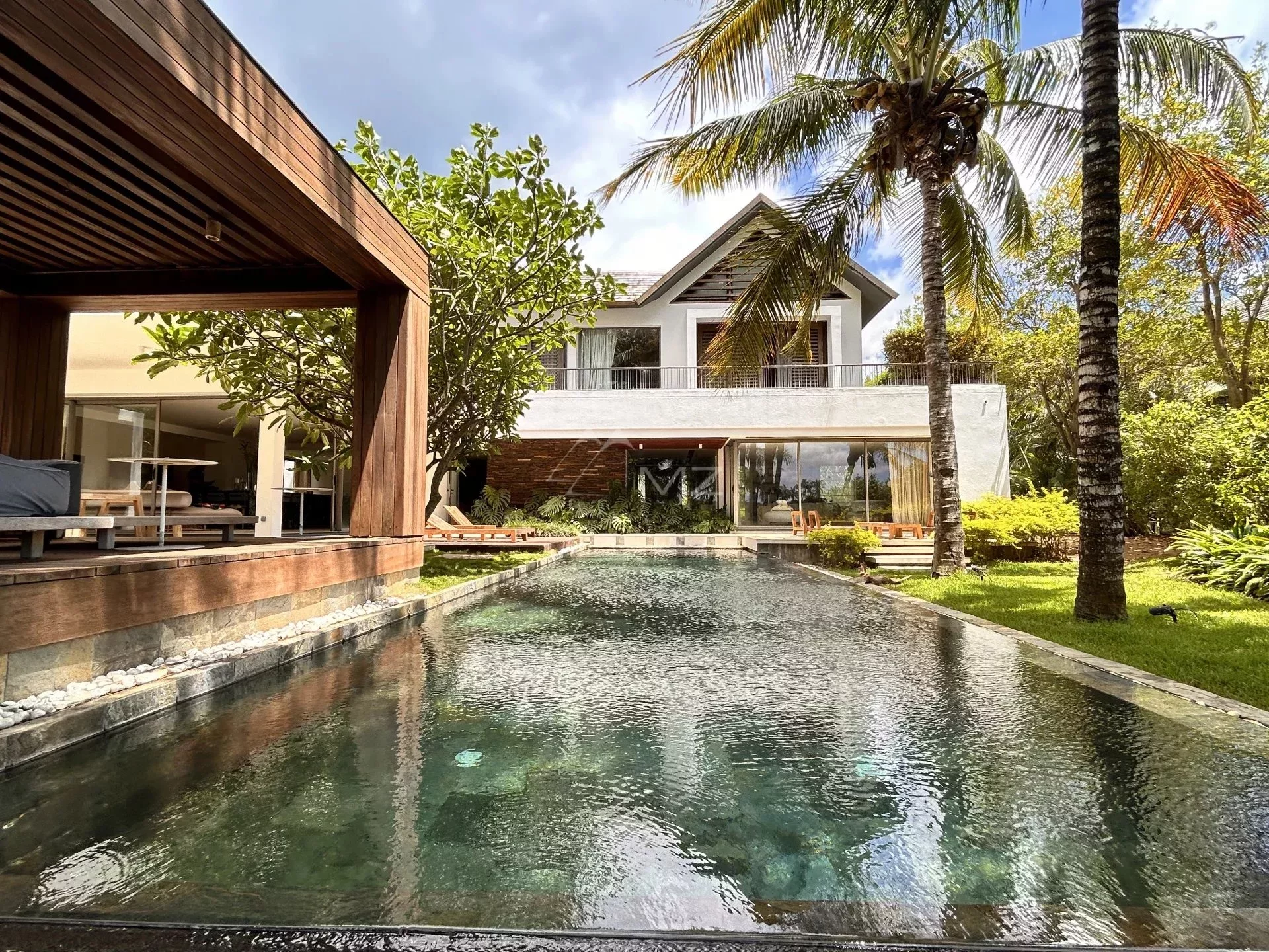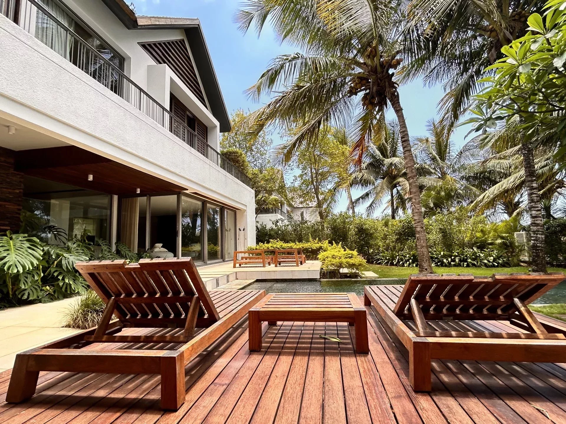 Die Villa besticht durch eine geräumige Küche mit Arbeitsplatten aus Naturstein und großzügige Wohn- und Essbereiche, die sich ideal zum Empfangen von Gästen eignen. Im Außenbereich überblickt ein Gartenpavillon einen schönen Pool, umgeben von einem sorgfältig gestalteten tropischen Garten.