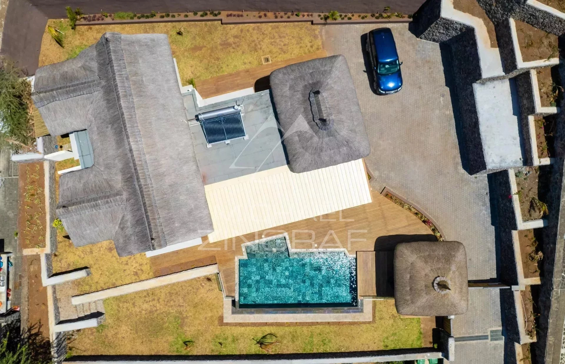 Mit ihrer tropischen, modernen und rustikal-chicen Architektur wurde die Villa mit hochwertigen, natürlichen Materialien gebaut.