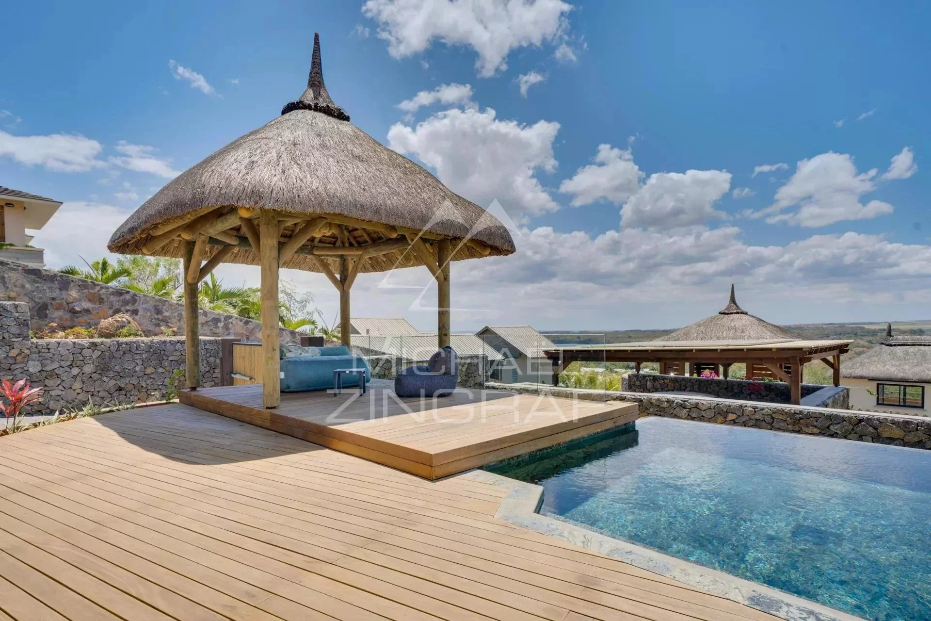 Außenbereiche: Ein Pavillon und ein privater Pool für unvergessliche Entspannungsmomente.