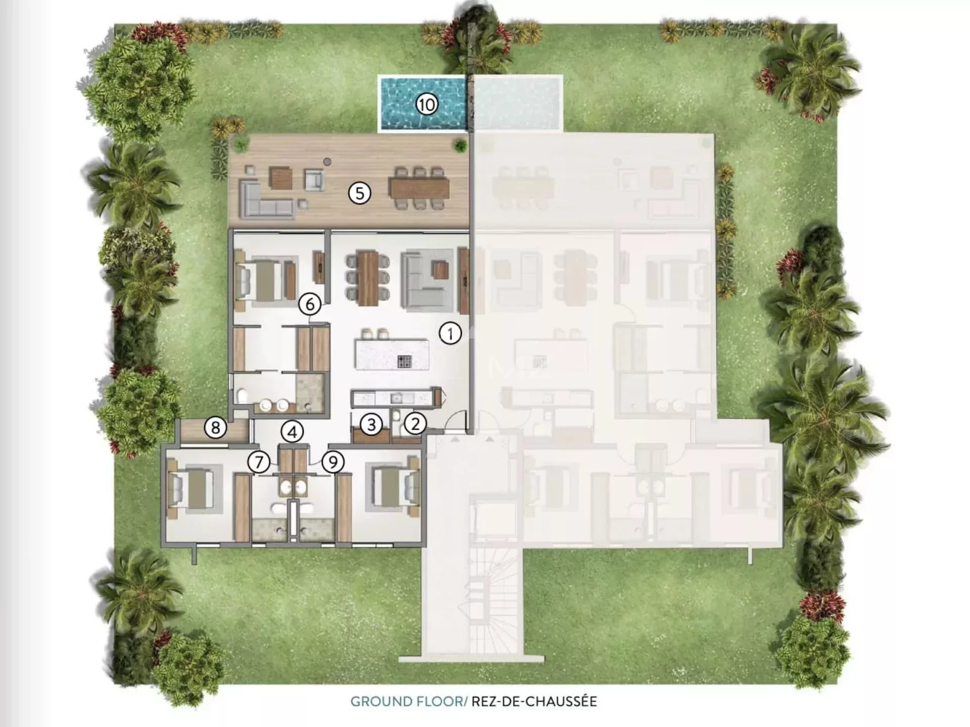 The modern tropical architecture combines aesthetic external sleek lines with the choice of warm materials to foster a perfect fusion between interior and exterior. Comfort is a core value when immersing further into the natural green surrounding your private refuge. The combination of traditional local textures within the modern-day decoration features is what sets La Réserve Balaclava apart. Natural stones, wood and intimate landscaped spots blend together to form an identity true to the unique island lifestyle.