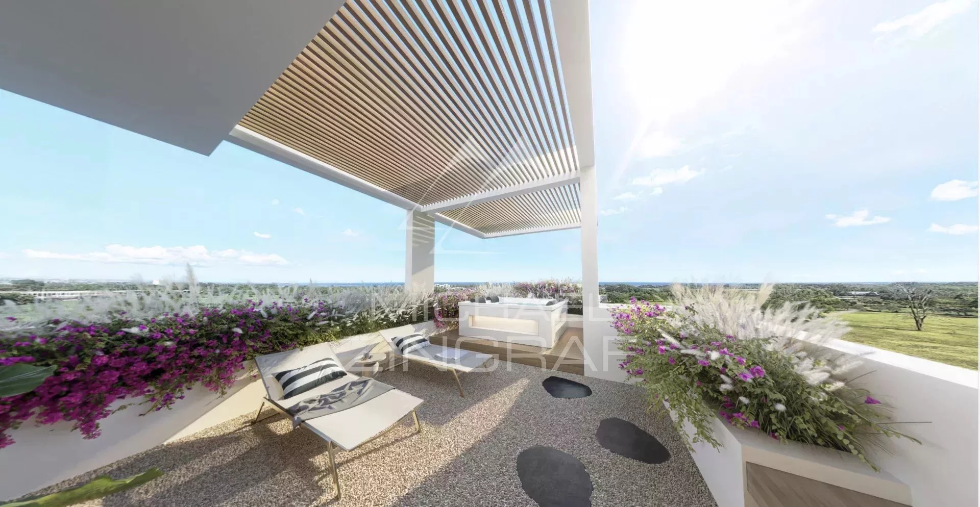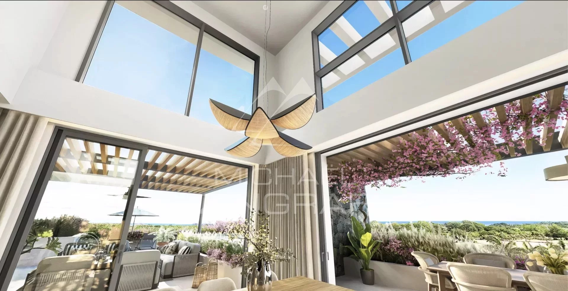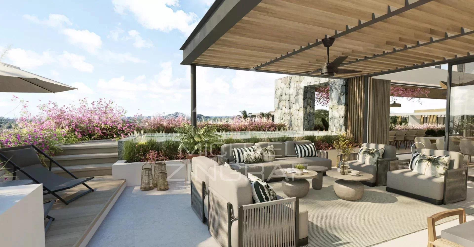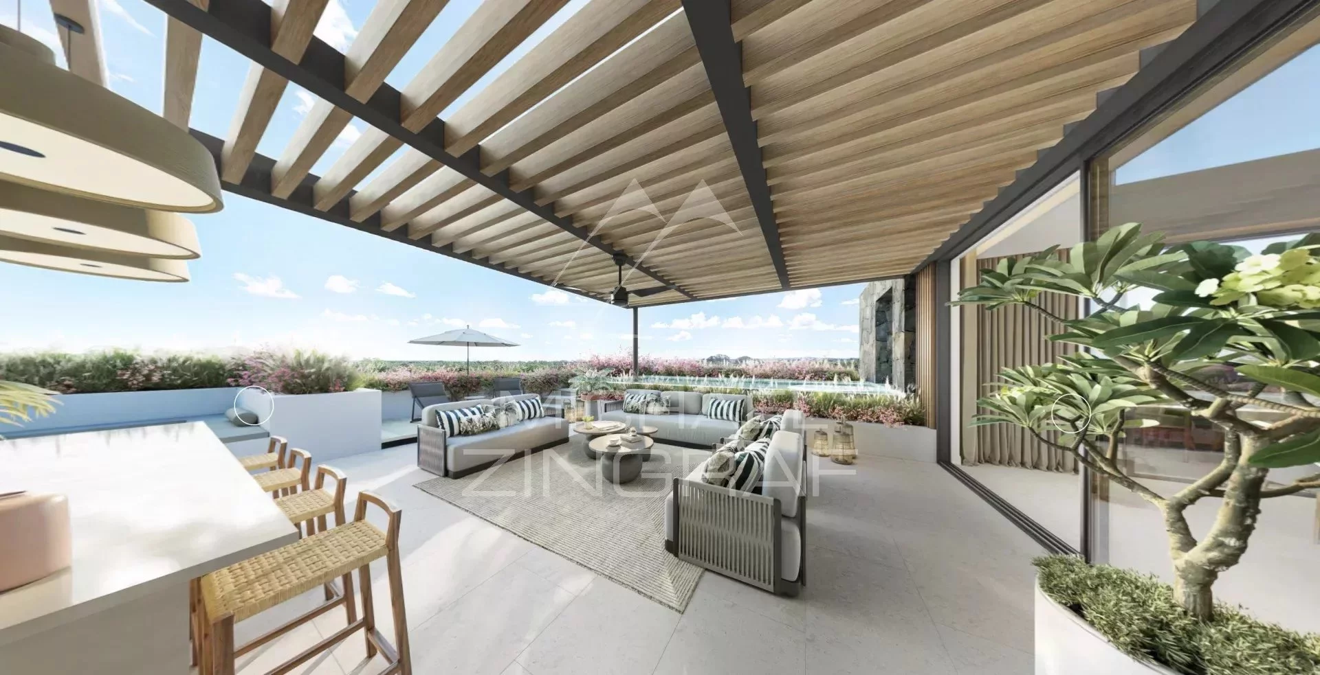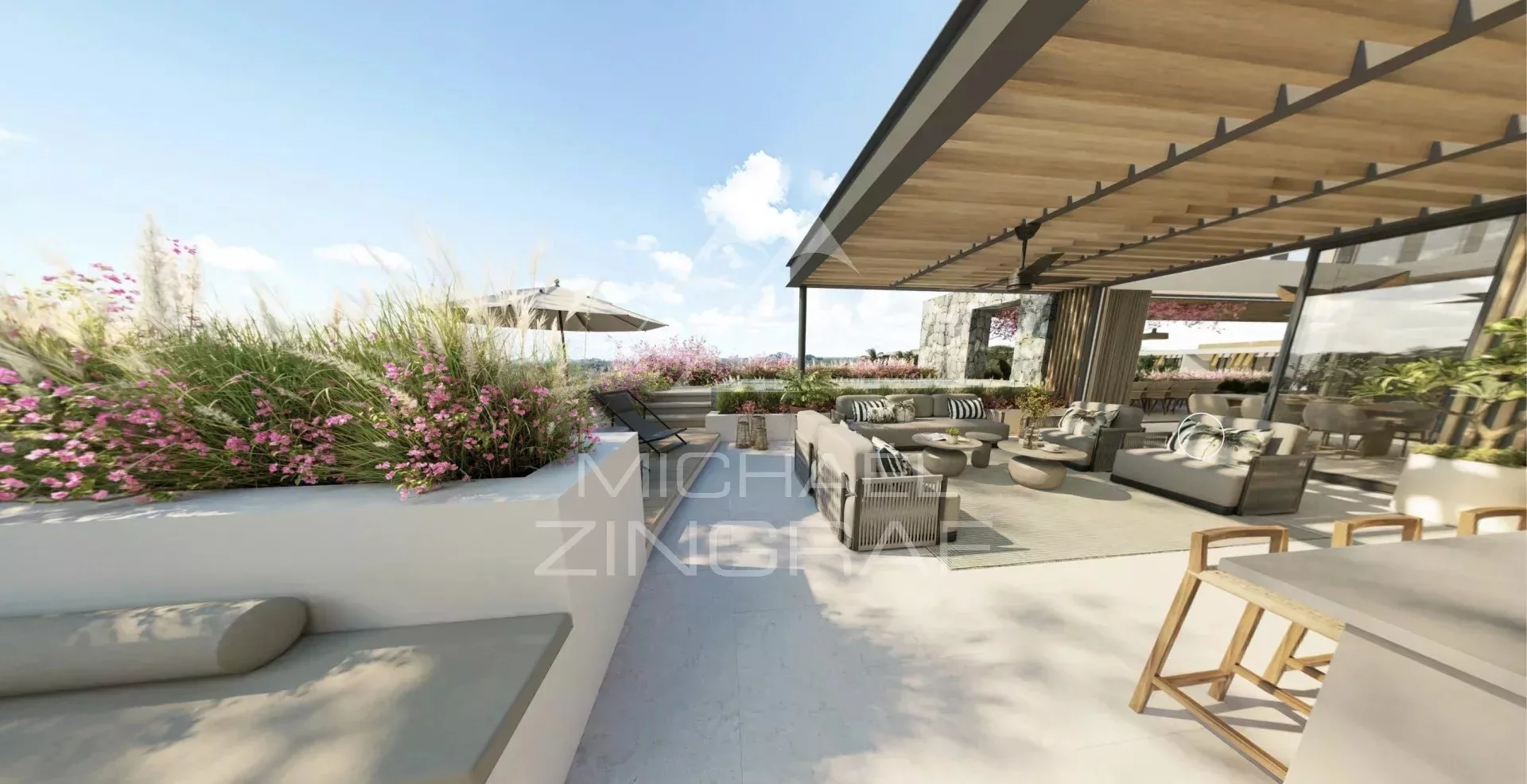 Where Horizon Meets Serenity: Elevated above it all, the terrace unfolds as a private sanctuary. A sun-drenched jacuzzi, panoramic views, and seamless indoor-outdoor living invite you to