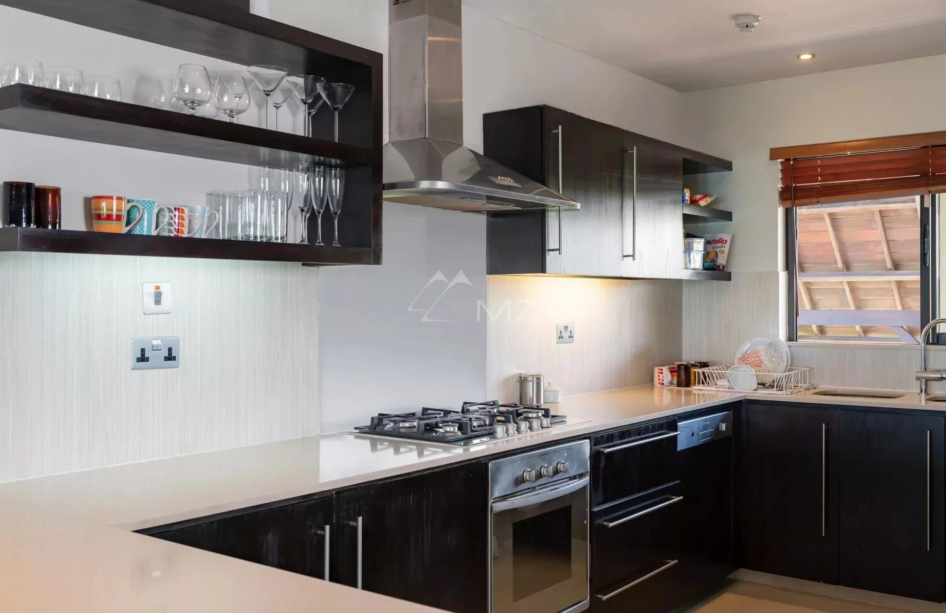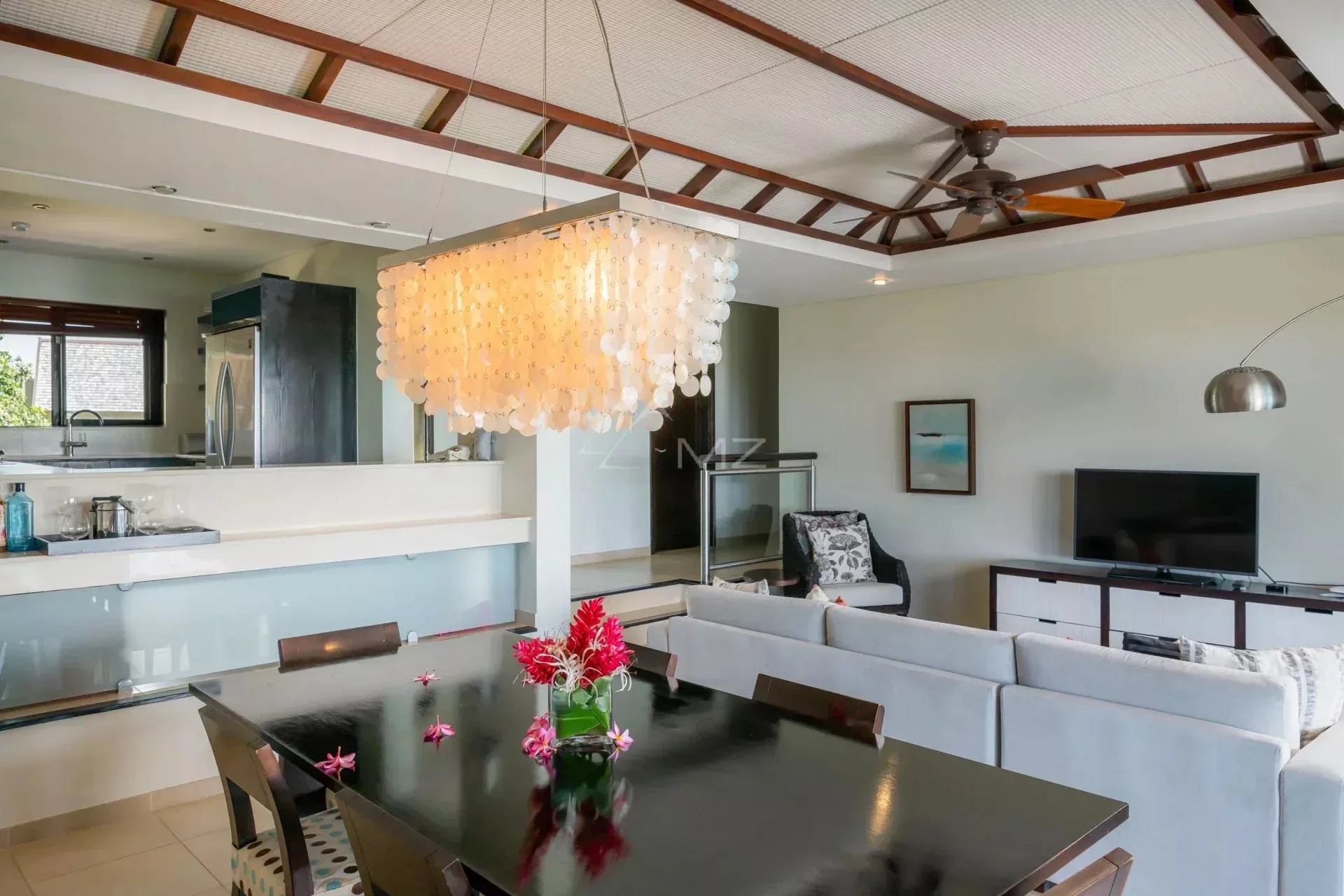 Superbe appartement en bord de mer, situé au dernier étage d'une résidence de deux étages, offrant l'une des vues les plus spectaculaires du domaine sur le lagon et l'Île aux Cerfs.