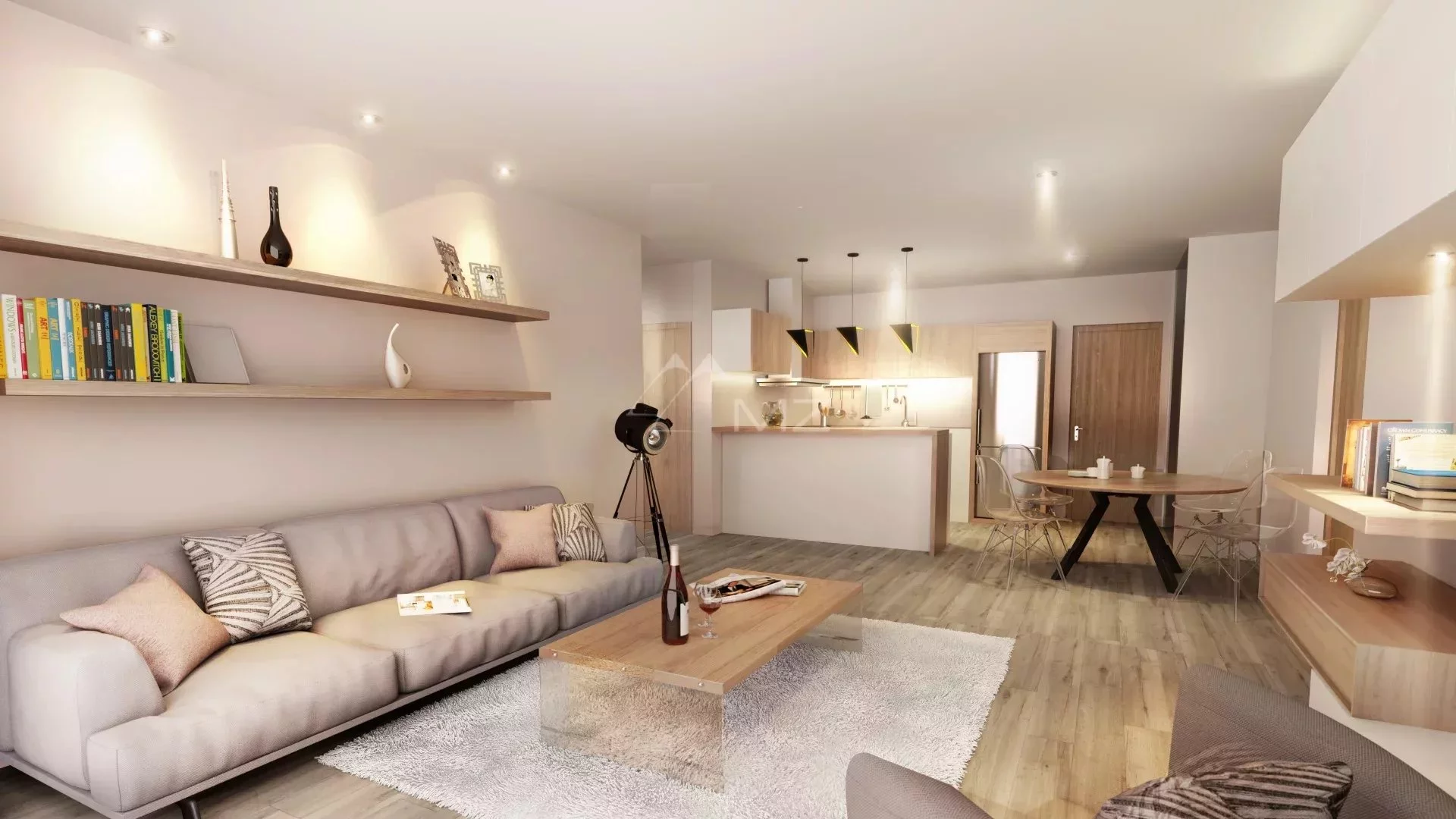 Moderne et lumineux cet appartement de 1 chambre à coucher offre un espace de vie comprenant une cuisine ouverte. La salle à manger et le salon donnent vue sur une terrasse ou un balcon. La chambre climatisée a une salle de bains attenante avec douche et WC ainsi qu'un dressing.