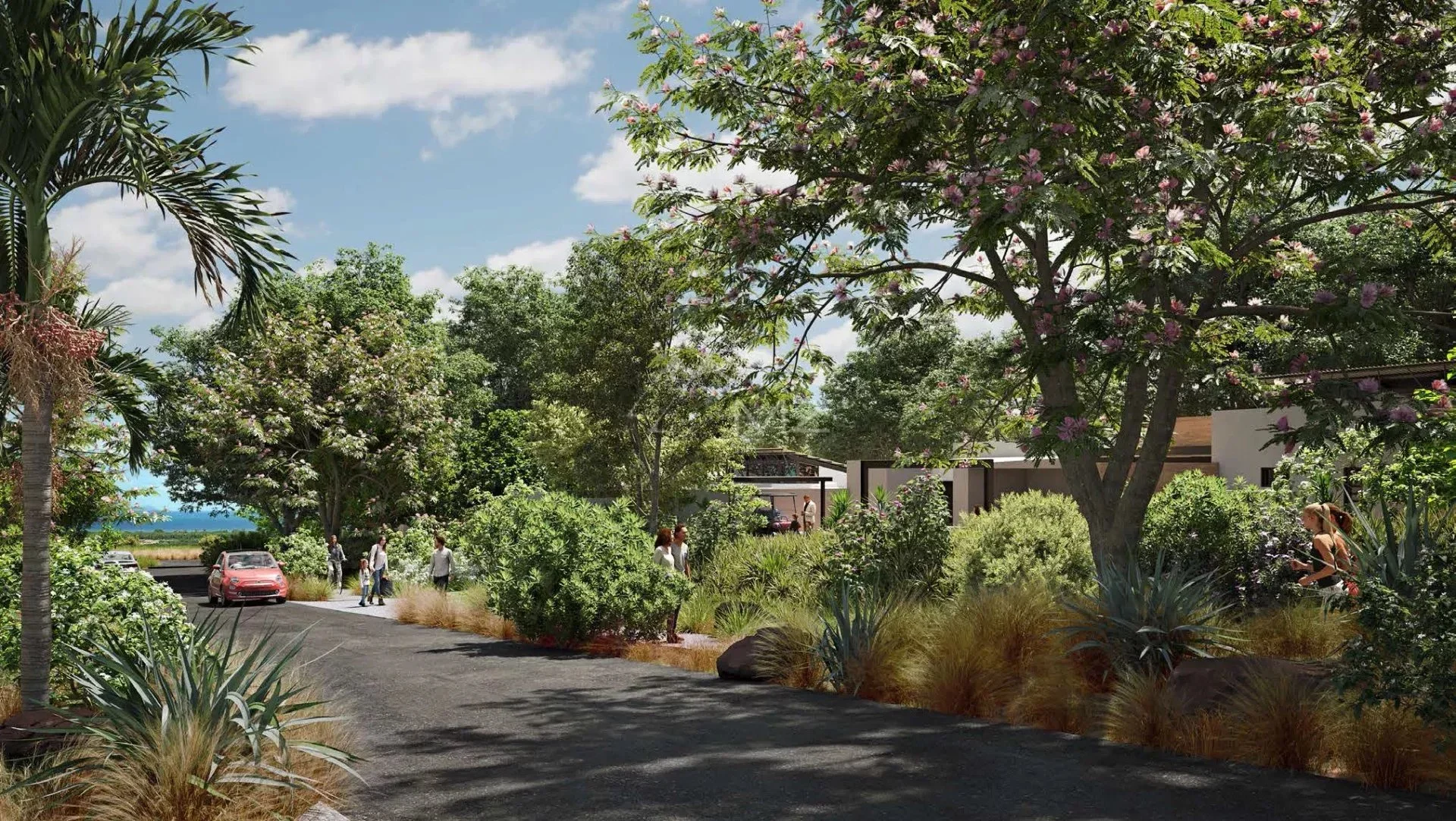 Die Website profitiert von einer einzigartigen Savannah -Atmosphäre. Sein Klima ist sehr trocken und seine aktuellen Landschaften bestehen aus einer Kombination aus hohen Kräutern im schwarzen Fluss, endemischen Bäumen, schwarzen Holzbäumen, Tamarindenbäumen, kreolischen Agaven und Vulkanfelsen. Das Konzept der Landschaftsgestaltung zielt darauf ab, die Schönheit des Geländes zu bewahren, indem 100 % der vorhandenen Pflanzen auf dem Gelände für Straßenrand wieder verwendet werden und 90 % der Umwelt um jede Villa mit vorhandenen Pflanzen des Geländes und endemischen Pflanzen von Mauritius entwickelt werden