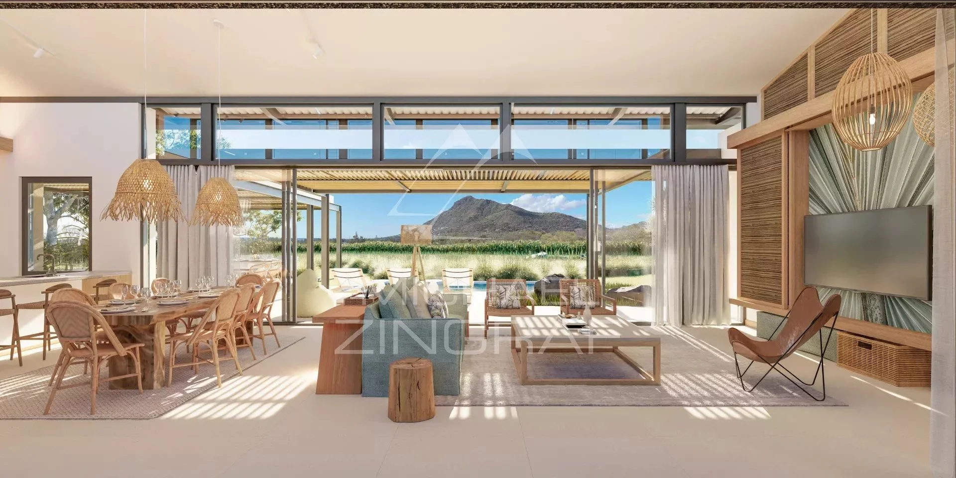 Elegant, geräumig und intim, bietet die Villa N einen hervorragenden Blick auf den Golfplatz und den Tamarin -Turmberg und bietet gleichzeitig eine ideale Orientierung, die vor den Winden geschützt ist und vollständig vom natürlichen Licht profitiert. Ihre Terrasse mit tropischer Landschaft ist eine grüne Lunge, um die das Leben des Haushalts täglich artikuliert wird. Mit ihren drei Schlafzimmern in Suite (ein 4. Schlafzimmer wird als Option angeboten) und sein großer Wohnraum, der Wohnzimmer, Esszimmer und offene Küche zusammenbringt, verwandelt sich alle in Außenlebensräume (Kiosk und Schwimmbad), es ist das Haus der tropischen Familie, die sich in der Familie befindet par excellence.