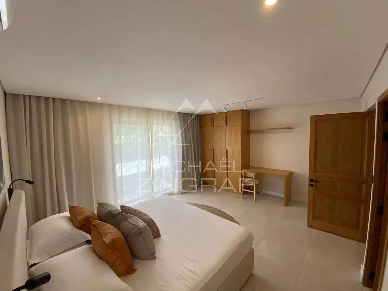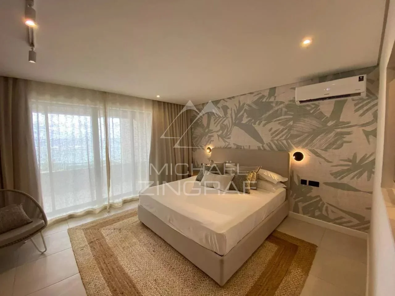 After a day filled with activity and excitement, unwind in your private sanctuary. The master bedroom opens onto a private balcony, with floor-to-ceiling doors revealing breathtaking sea views. Standing on the balcony, you are embraced by a panoramic view of shimmering ocean waters stretching to the horizon. The sight and sound of the sea instantly evoke a sense of calm and serenity.