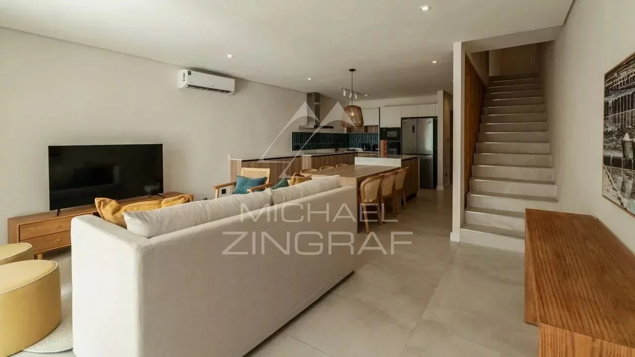Nestled within a gated community, this stunning duplex ensures an exclusive beachfront lifestyle. Subtly unique, each residence blends indoor and outdoor living with effortless open-plan design. Expansive windows and doors connect airy interiors to the outdoors. Relax by your private pool and lush garden, surrounded by tropical tranquility.