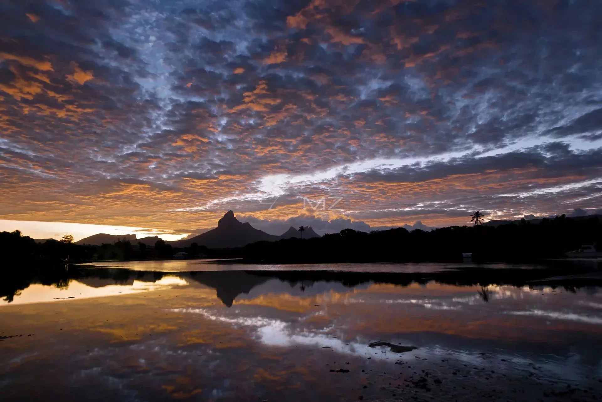 Located in a secure residence, this villa is nestled in a preserved, calm and green environment, on the west coast of Mauritius. The estate is bordered by the prestigious 18-hole Tamarina golf course and the river that flows into the sea, creating a splendid natural peninsula. This unique place, perched nearly 30 meters above the surrounding nature, offers a panoramic view, with a gentle slope leading the river to Tamarin Bay.