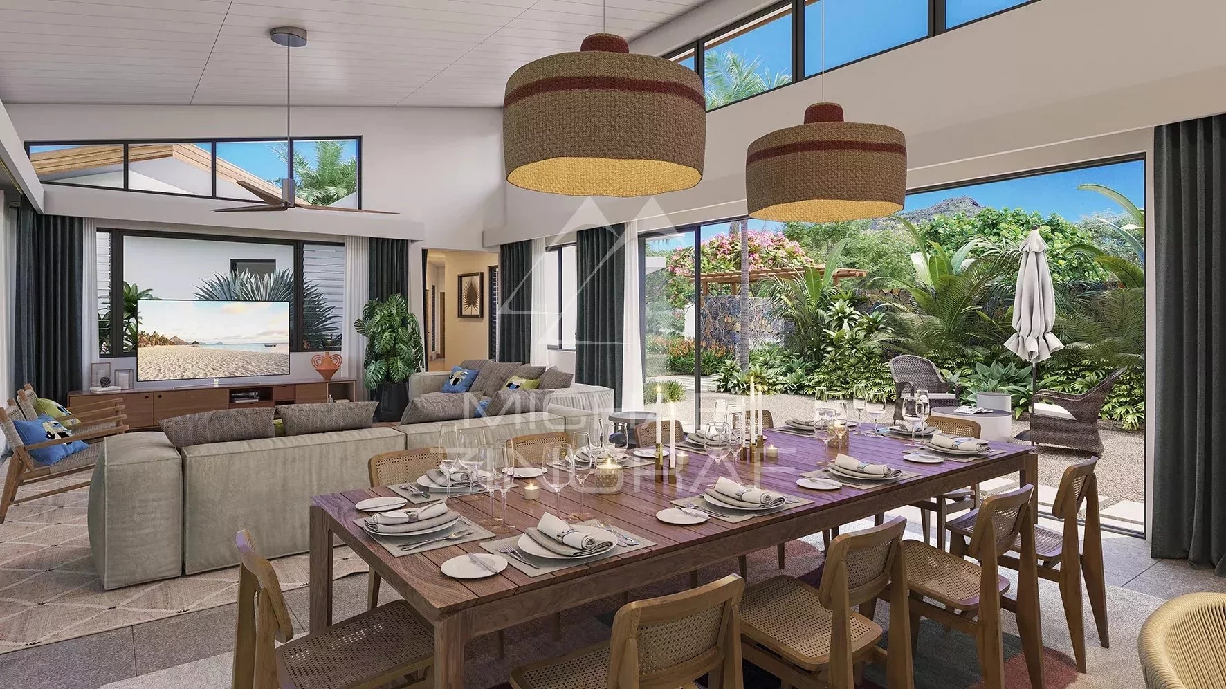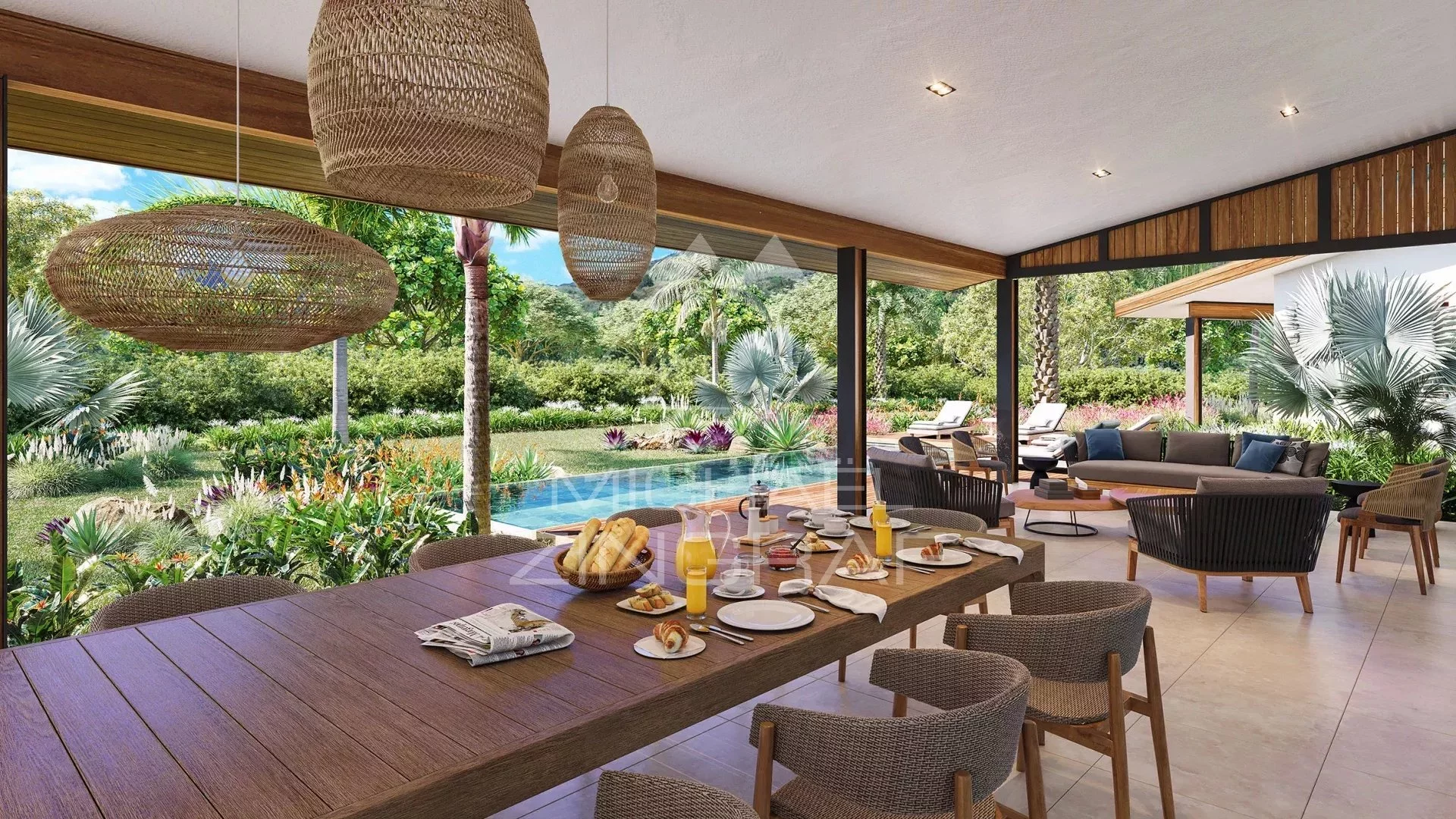 With an incredible view of the Western Mauritian mountain range, Ekô Savannah enjoys an exceptional location, at the gateway to the bustling Tamarin area, with its surf spots, golf course and shops. Just a few minutes from the bay and the most beautiful spots on the west coast, the incredible natural beauty of the panorama blends subtly with the refined contemporary architecture of the 47 prestigious villas on this vast private estate. From 3 to 5 bedrooms, each with a private pool and large garden, they are like a lush oasis in the heart of the wilderness.