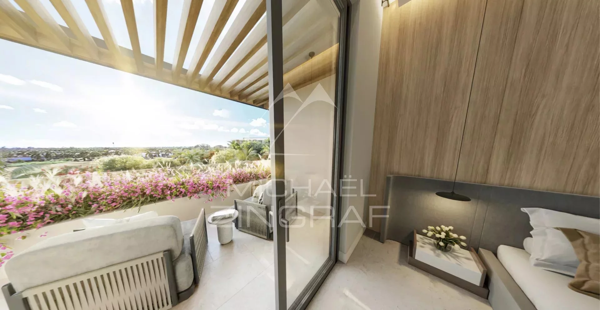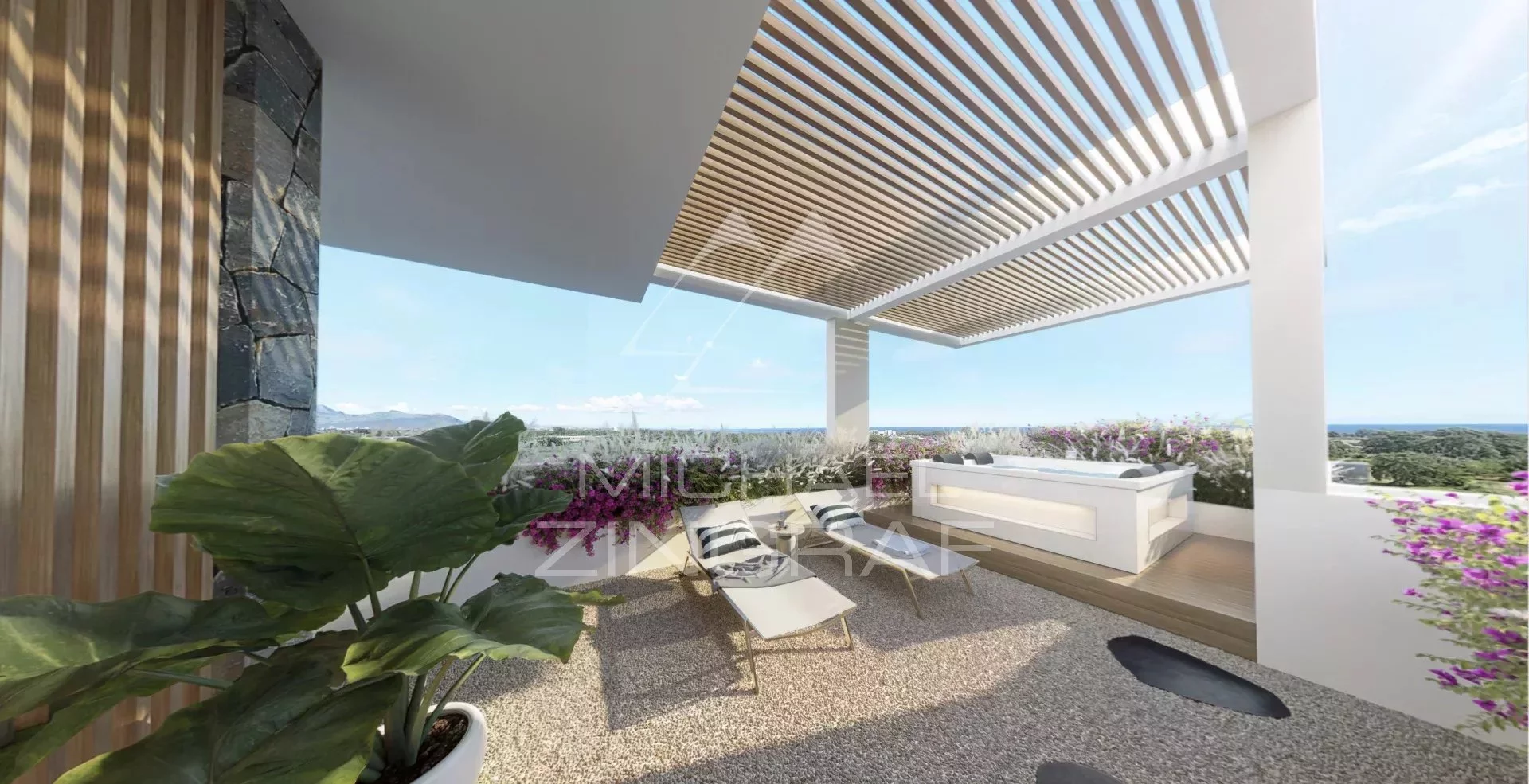 Where Horizon Meets Serenity: Elevated above it all, the terrace unfolds as a private sanctuary. A sun-drenched jacuzzi, panoramic views, and seamless indoor-outdoor living invite you to
