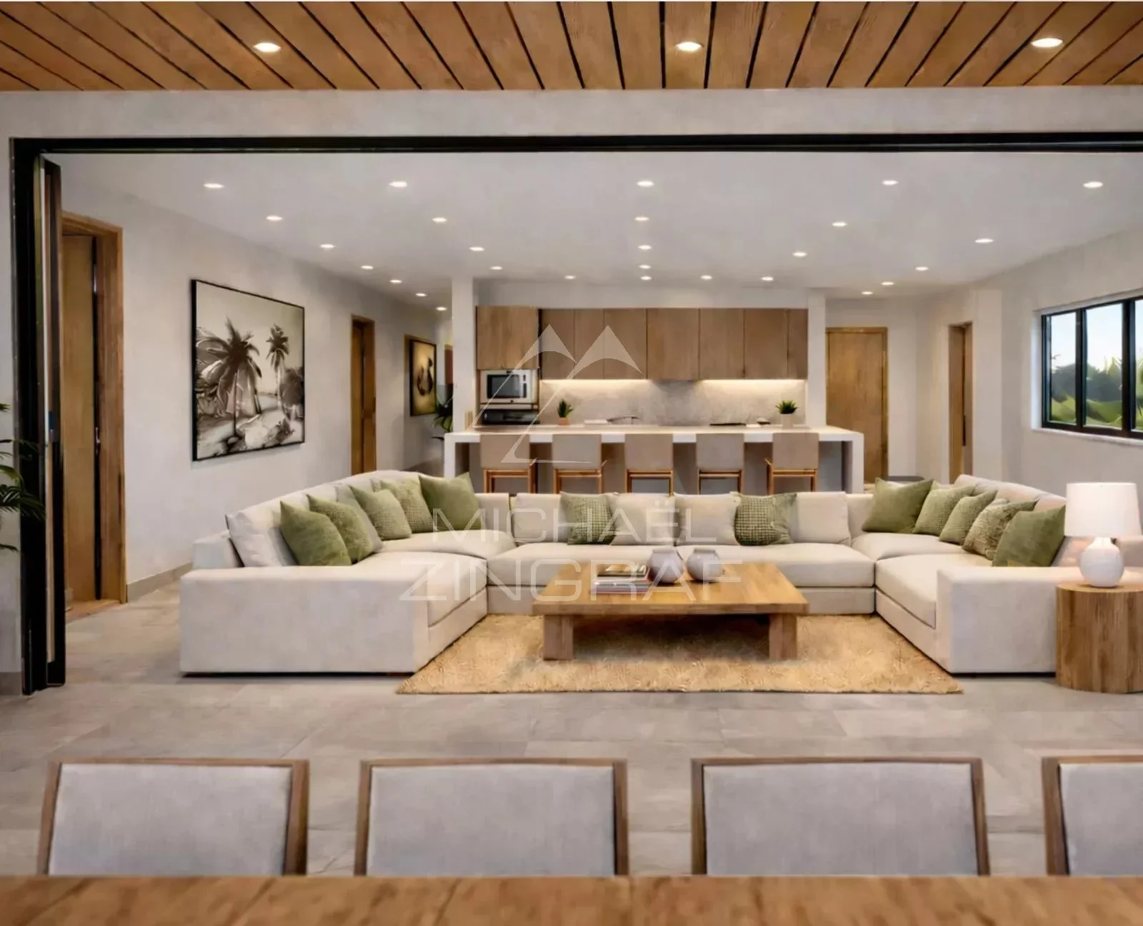 Vaste séjour moderne avec salle à manger et cuisine ouverte