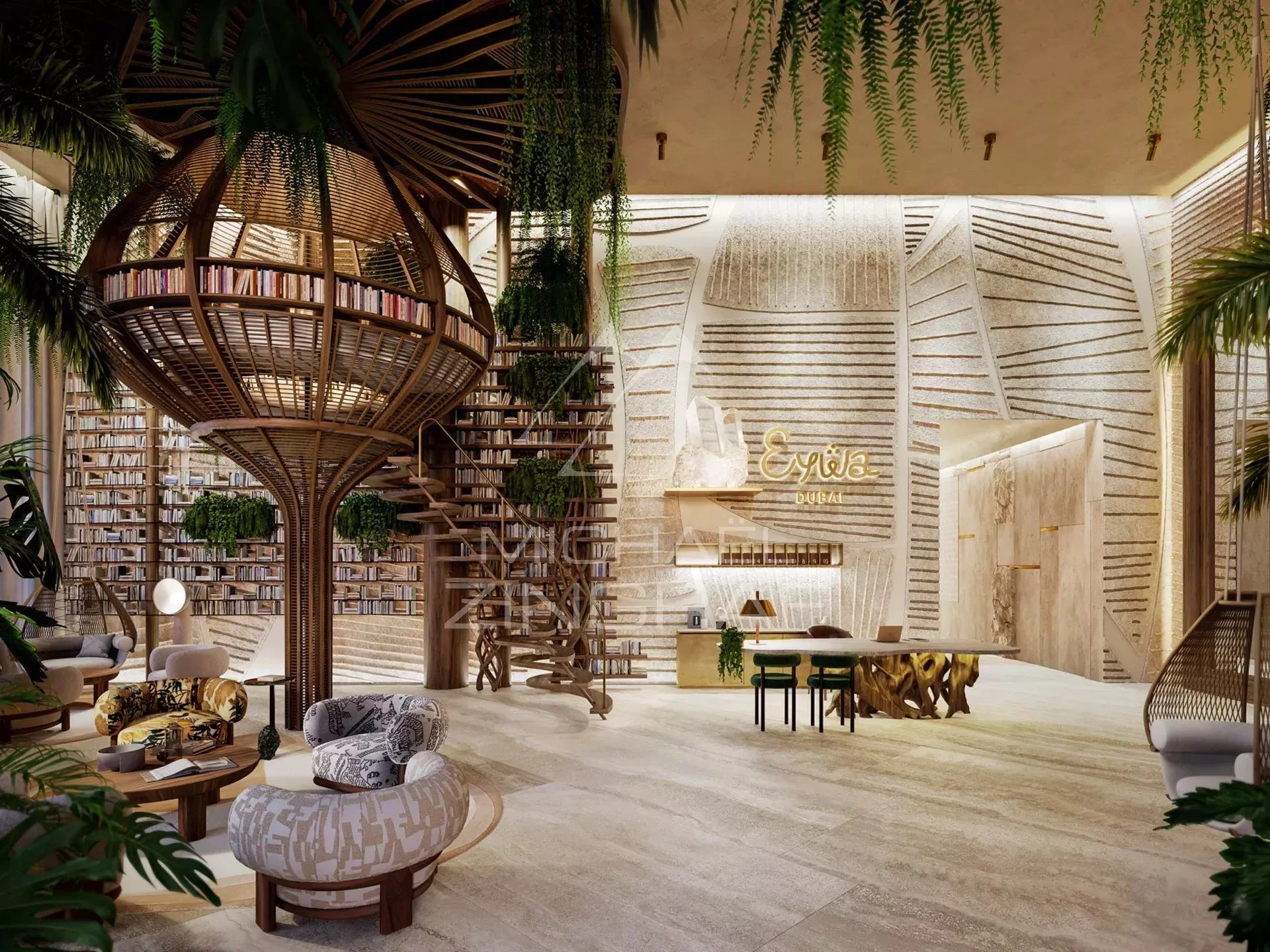 Inspirée de l’arbre Banyan, symbole d’équilibre et de croissance, l’architecture organique d’EYWA évoque un arbre de vie monumental dont les racines et les branches s’entrelacent harmonieusement. Chaque détail du bâtiment a été pensé selon les principes ancestraux du Vastu Shastra, subtilement associés aux technologies les plus avancées, afin de créer un environnement énergétiquement équilibré et profondément apaisant.
