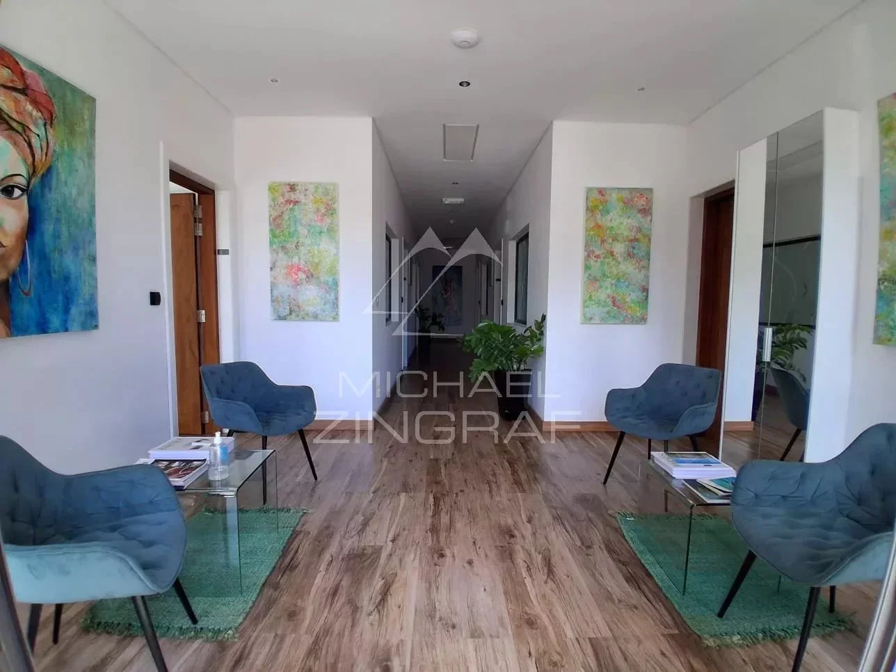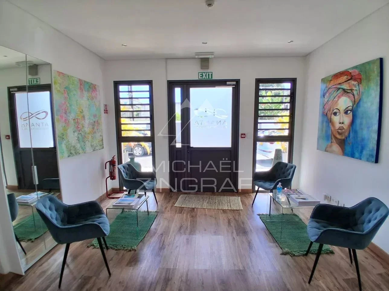 Bureaux situés à Pointe aux Canonniers, dans le nord de l’Île Maurice : lumineux et neufs dans un petit immeuble d’un étage, offrant un environnement de travail agréable et moderne.