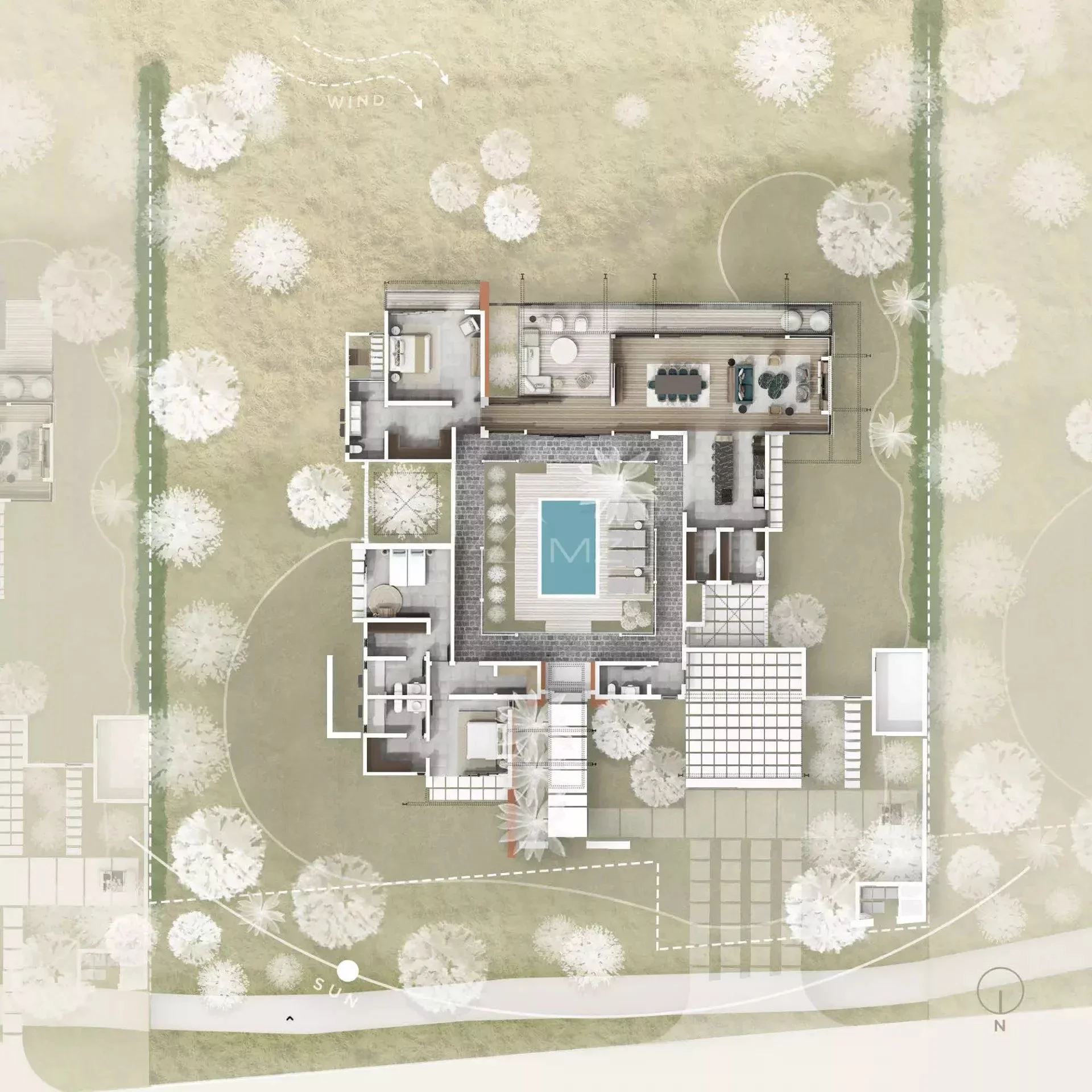 Ce concept est proposé pour 24 villas (en phase 1). Élégantes, spacieuses et intimes, elles offrent de superbes vues sur la mer, le golf et la montagne de la Tourelle de Tamarin, tout en offrant une orientation idéale, protégée des vents et bénéficiant pleinement de la lumière naturelle. Le patio avec aménagement paysager tropical est un poumon vert autour duquel la vie de la maisonnée s’articule au quotidien. Avec trois chambres en suite (une 4ème chambre est proposée en option) et ses grands espaces de vie réunissant salon, salle à manger et cuisine ouverte, le tout tourné vers les espaces de vie extérieurs (kiosque et piscine), c’est la maison familiale tropicale par excellence. Multiculturelle, hétéroclite, sereine, exaltante... Les termes sont aussi nombreux que