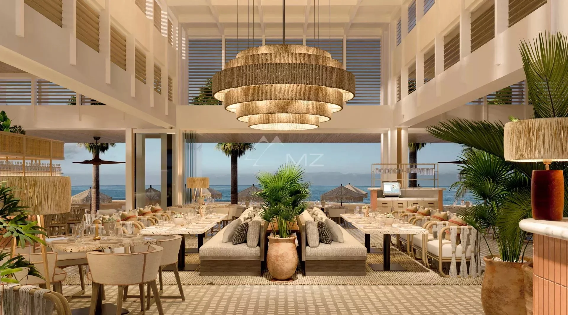 Surplombant une plage de sable blanc, une des plus belles de toute l'île Maurice, le Beach Club se veut moderne et élégant.