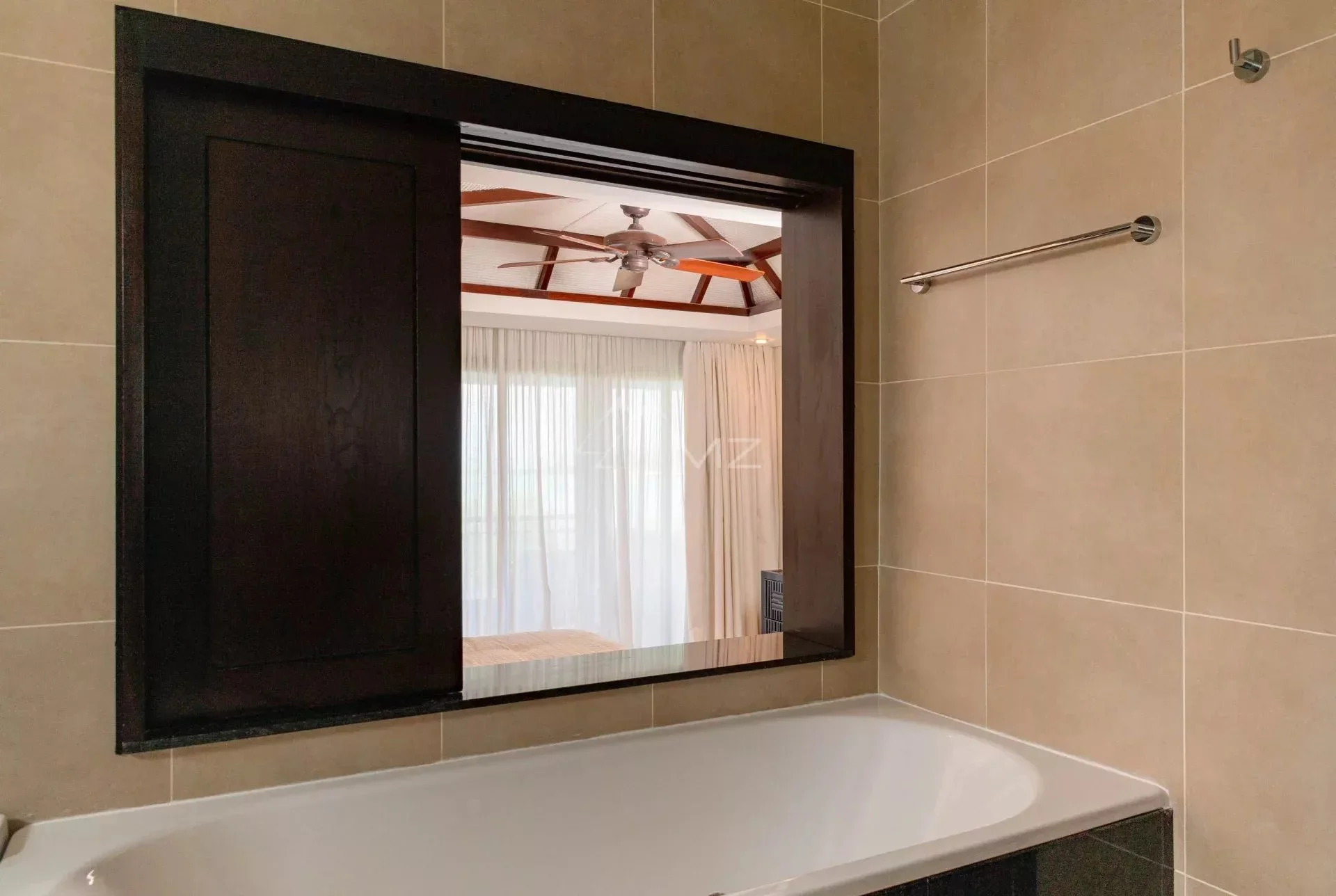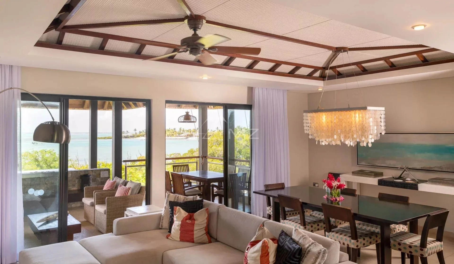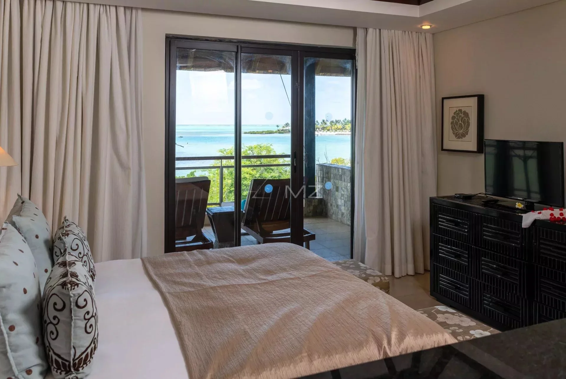 Superbe appartement en bord de mer, situé au dernier étage d'une résidence de deux étages, offrant l'une des vues les plus spectaculaires du domaine sur le lagon et l'Île aux Cerfs.