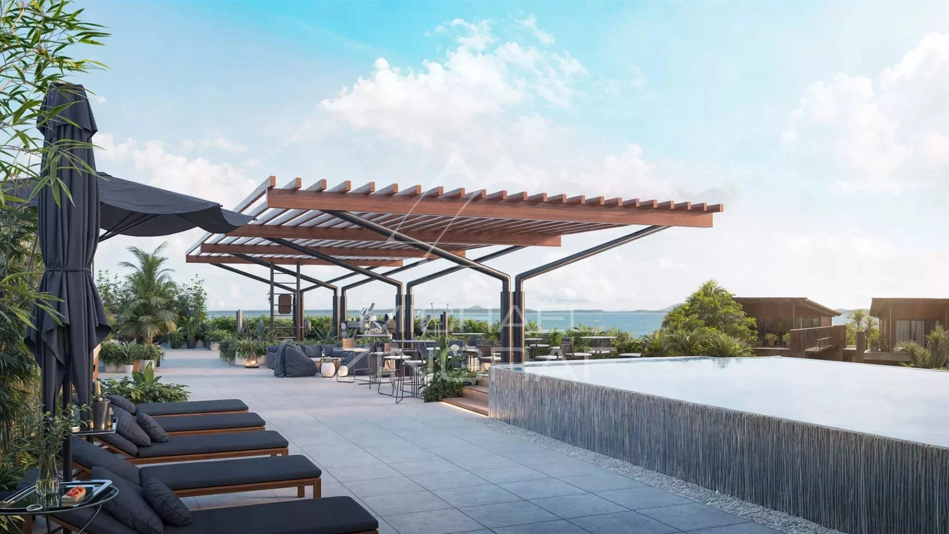 Profitez d'une vue imprenable sur le Coin de Mire depuis la piscine à débordement, détendez-vous dans l'espace détente ou organisez vos réceptions au barbecue avec vue imprenable sur l'océan. Restez actif dans la salle de sport extérieure, tout en profitant du style de vie insulaire par excellence.