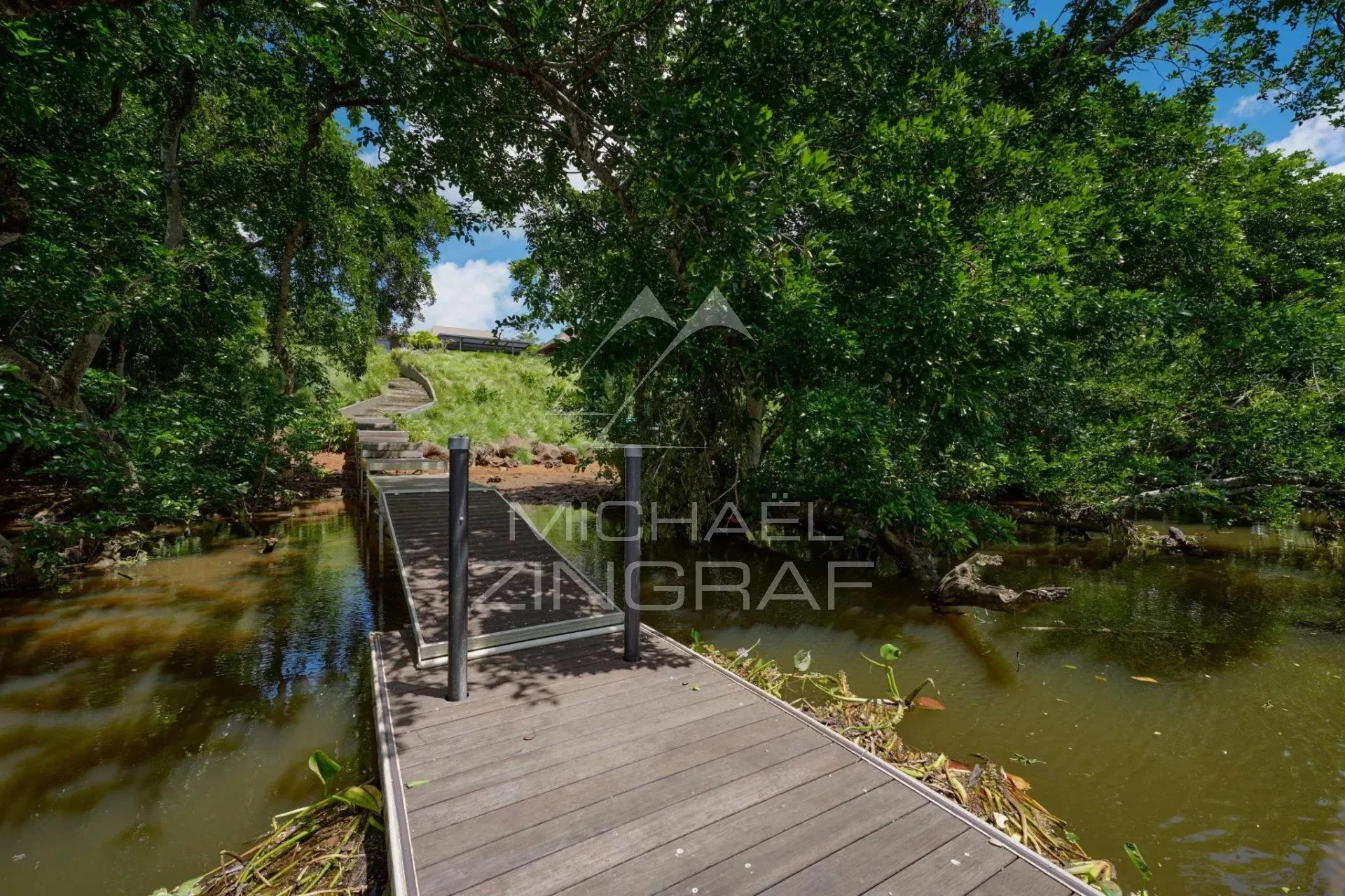 Profitez d’un accès direct à la rivière ou à la mer via votre ponton privé — idéal pour les activités nautiques ou de paisibles promenades en bord de l’eau. La vaste terrasse avec bar est parfaite pour recevoir tout en admirant les vues panoramiques spectaculaires.