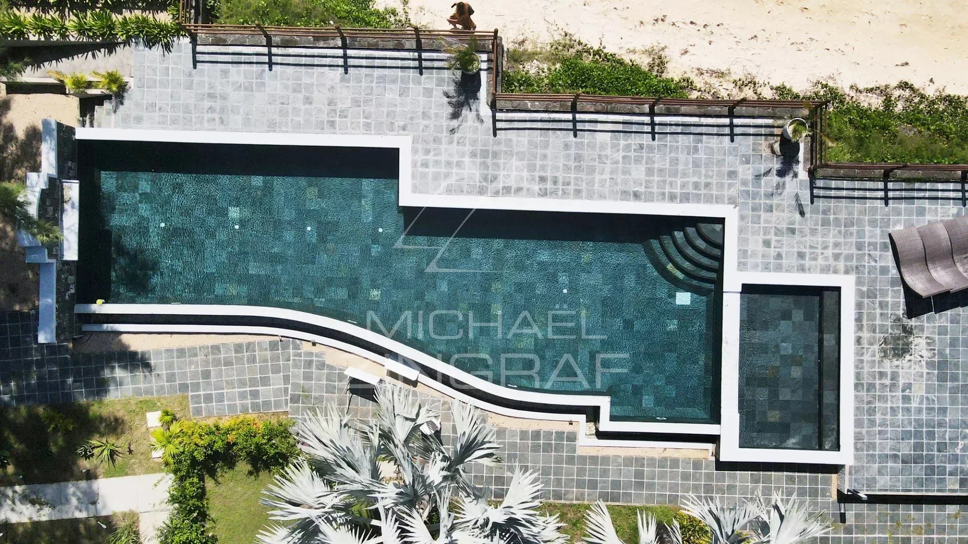 Grande piscine commune avec une vue spectaculaire sur l’océan